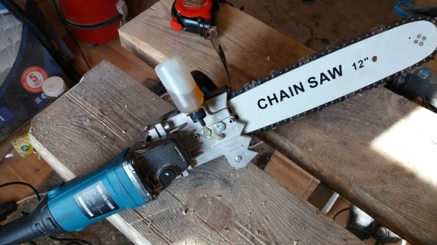 Китайцы и тут постарались, выдав такой важный элемент в высоком качестве. Если кратко, то эту штуковина способна сделать из УШМ мини-бензопилу. В комплекте – ручка для удержания, защитный кожух, мелкие детали, цепь, корпус, шина и др. Легкая сборка. Комфортная работа.
