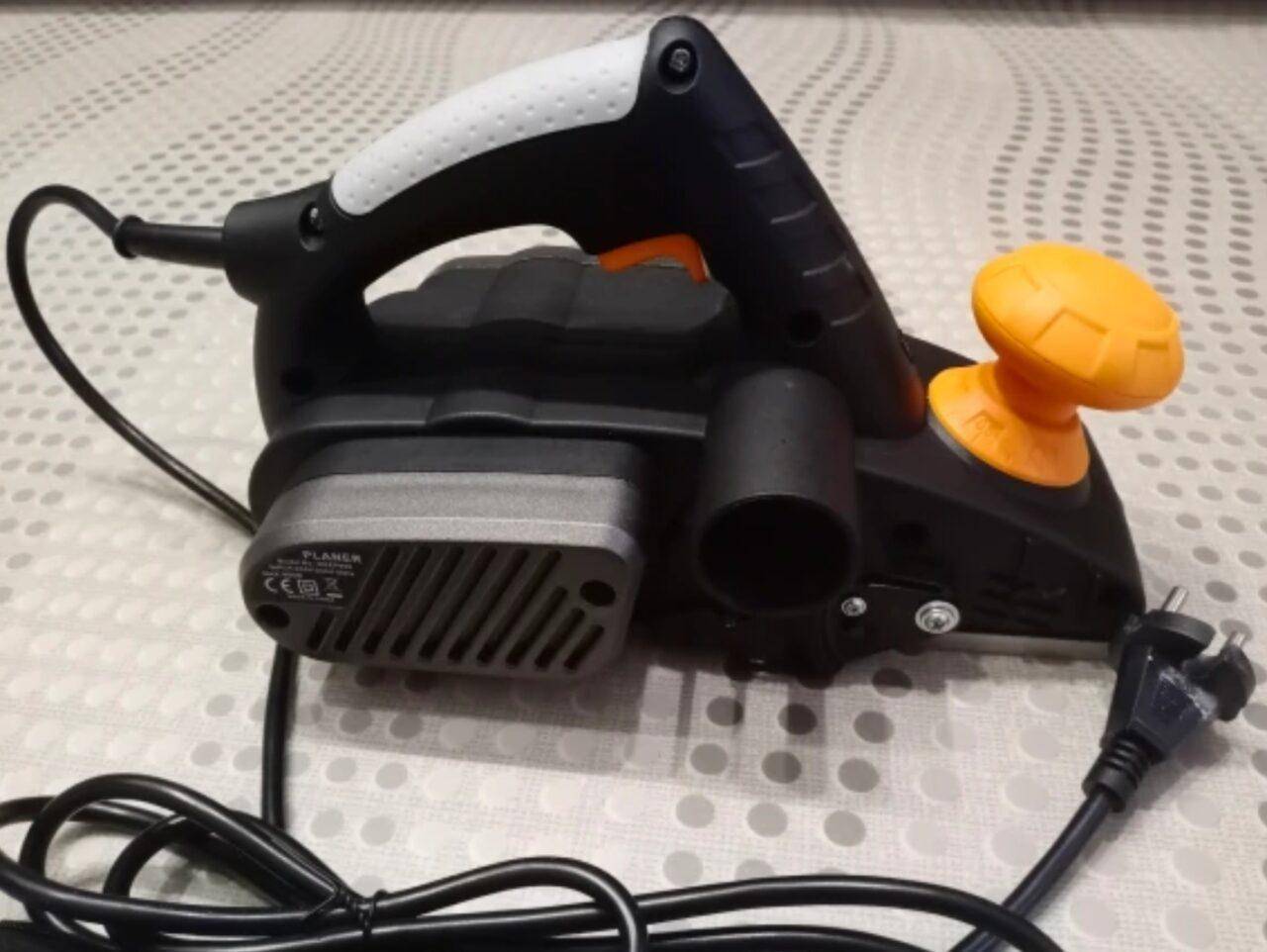 Сначала – о назначении и параметрах. Идеально строгает доски, и этим все сказано. Ширина ножа – 82 мм. Регулятор глубины выставляет диапазон 0.5-3 мм простым опусканием или поднятием переднего столика. В наборе, кроме инструмента, идут инструкция, плотный мешочек для сбора опилок и фиксатор для выборки четверти.