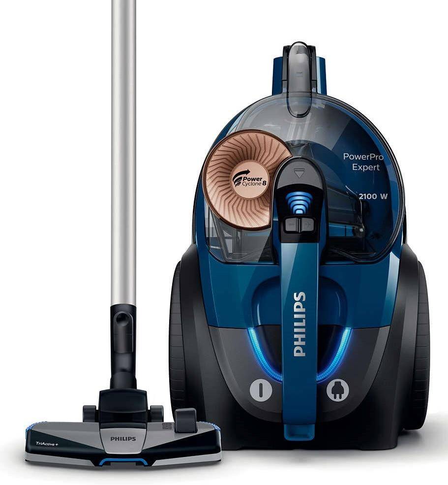 Технология PowerCyclone 8 призвана отделять частицы пыли от воздуха. Уникальность насадки TriActive+ в способности приподнимать ворс ковра вкупе с оптимальной конструкцией. Ее особенность в воздушных каналах, которые собирают крупный мусор, а расположенные по бокам щетки убирают сор и грязь вдоль стен и мебели. Насадка DiamondFlex – вращающаяся, в пределах 180°проводит тщательную уборку. На счету Philips FC9733 PowerPro Expert – десятки положительных отзывов.