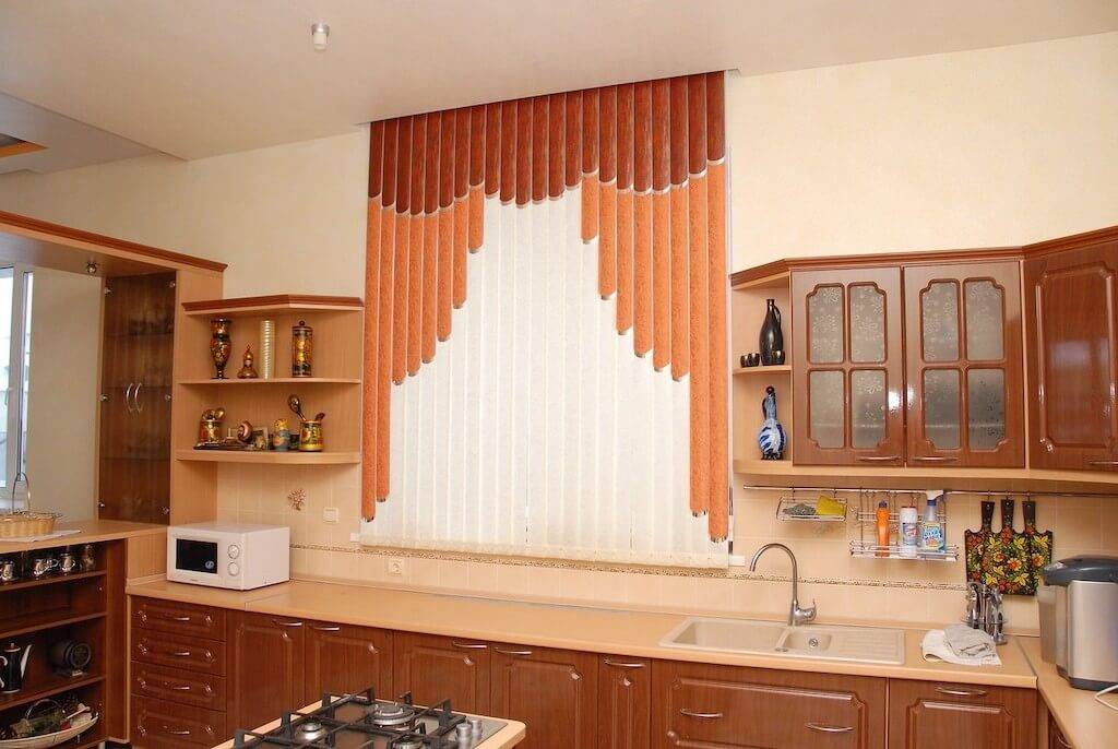 Худшим решением для кухни станут жалюзи. Они разрушают атмосферу уюта, придавая комнате офисный стиль. Помимо этого, жалюзи — это магнит для пыли и грязи. Учитывая обилие влаги, жира и запахов на кухне, отмыть их нереально.