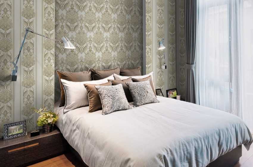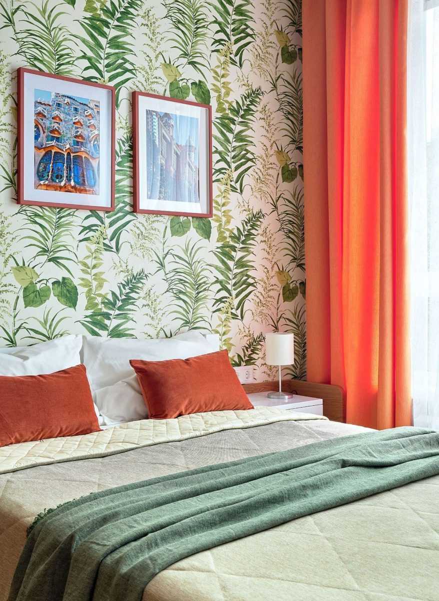 Но здесь есть важное правило: обои должны быть немного светлее или темнее текстиля. Насыщенность зависит от общего решения помещения.