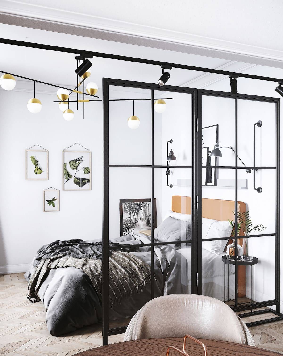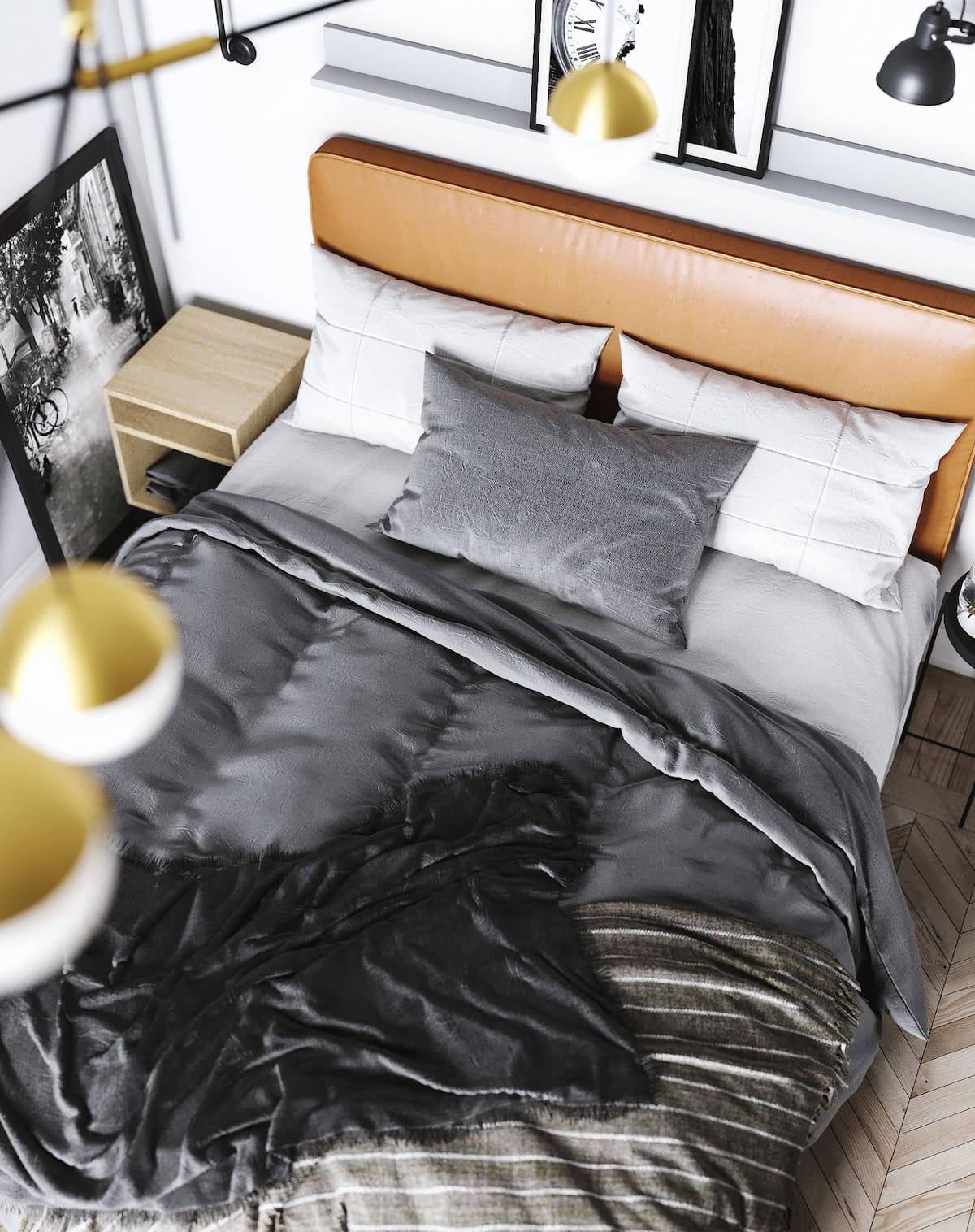Дизайн спальни в скандинавском стиле – контраст белого с черным в современном интерьере уже полюбился многим. Оформляя, таким образом, комнату, помните, что черный цвет не должен сильно выделяться; им необходимо дополнить основной тон, но избежать темноты в помещении.