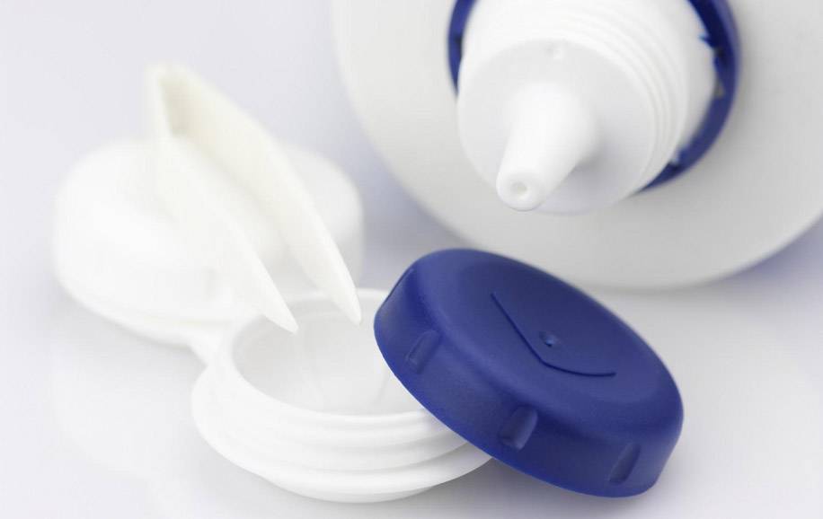 В составе пероксидных растворов для очистки контактных линз.
