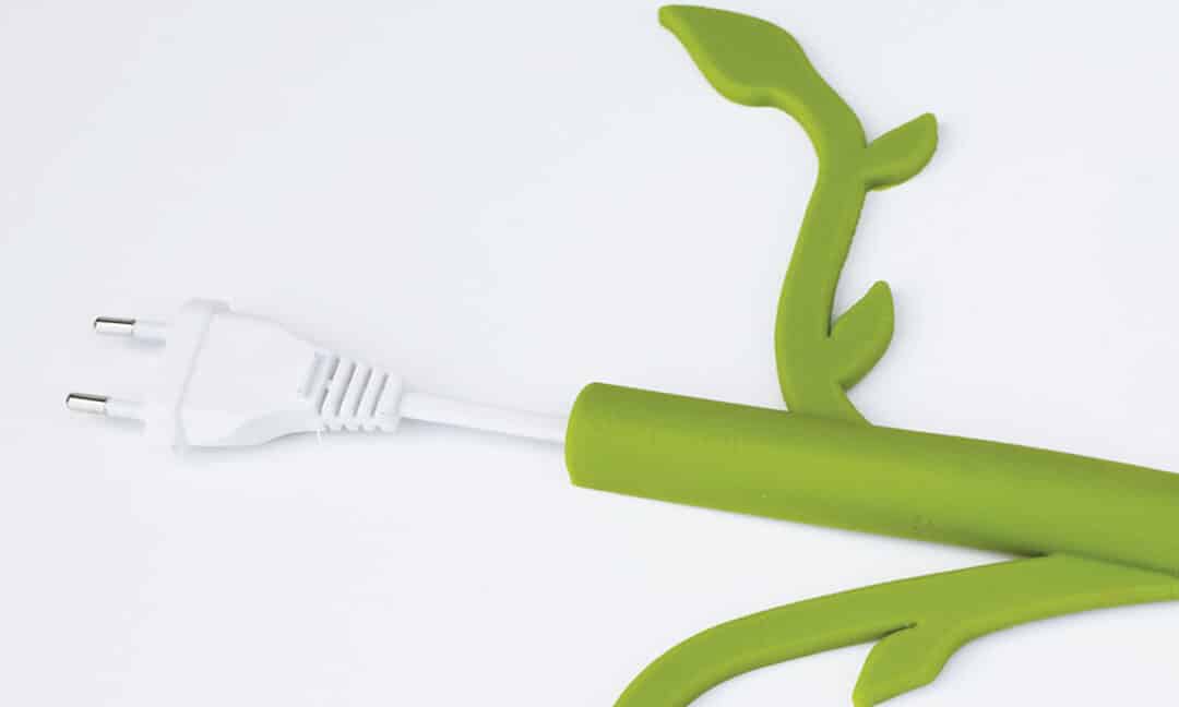 Менее навязчивым дизайном отличаются листики-крепления, превращающие провод в лаконичный росток. Он же крепит шнур к стене.