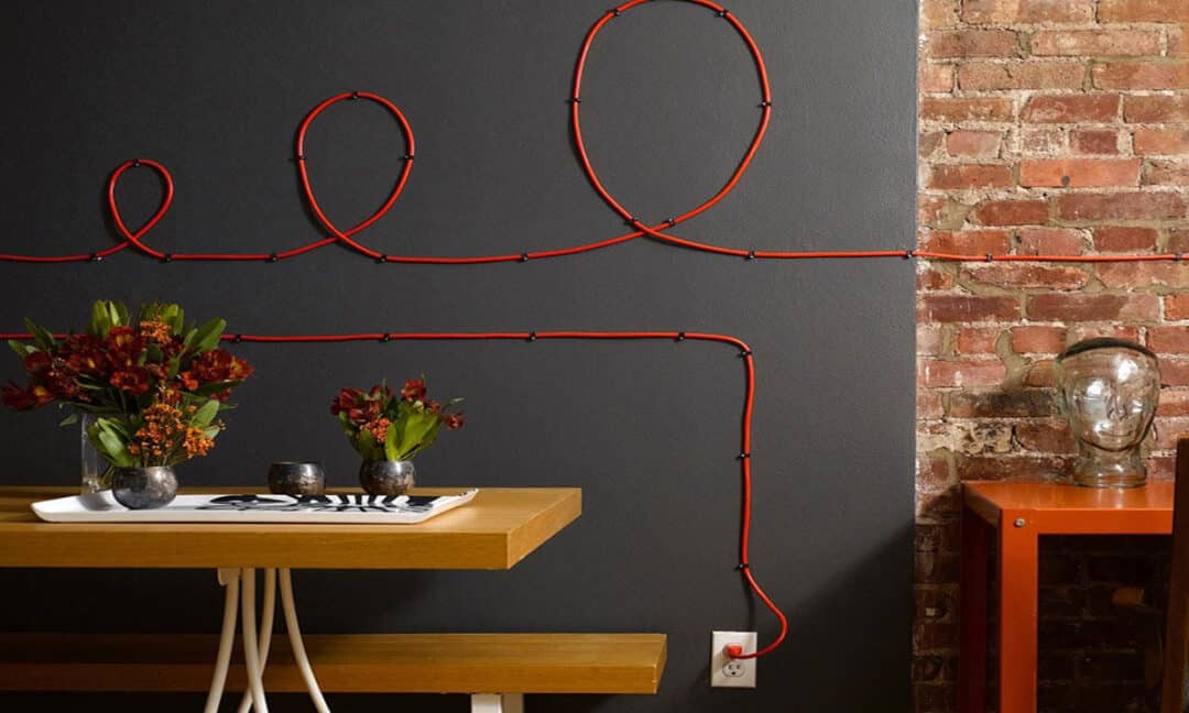 Сделать провод деталью декора. Если длинный провод нельзя спрятать, возможно, он впишется в интерьер в виде настенного панно.
