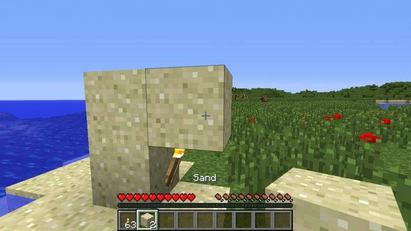Если вы поместите факел на стене или полу, над ним можно расположить блоки любых видов в любых количествах, будь то песок, грязь, дерево, сталь или что-то еще. Факел выдержит независимо от количества блоков.