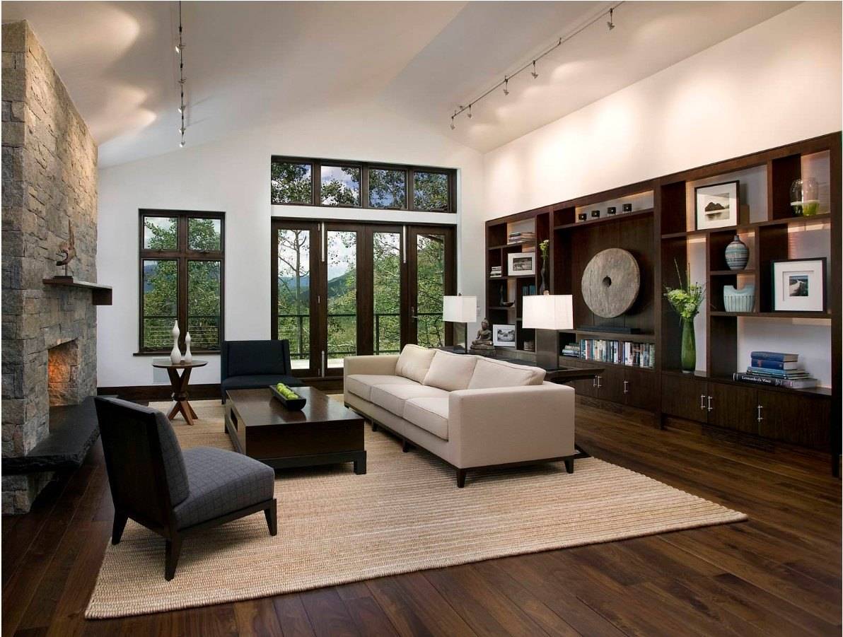 Гостиная в бежево-коричневых тонах может вписаться в такие стилистические решения, как: