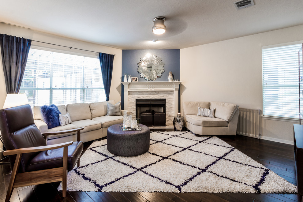 При желании можно добавить для уюта электрический камин, стеллаж с книгами, комнатные растения или стильный торшер. Тут уже отталкивайтесь от собственных предпочтений.