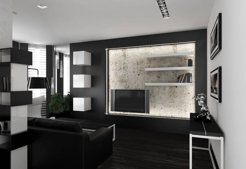 Используя всего лишь черно-белую расцветку можно создать очень стильный интерьер. В гостиной с темными однотонными обоями идеальным украшением будут черно-белые фотографии или же наоборот – цветные броские пятна. Светодиодное освещение в современном дизайне будет выглядеть особенно эффектно.