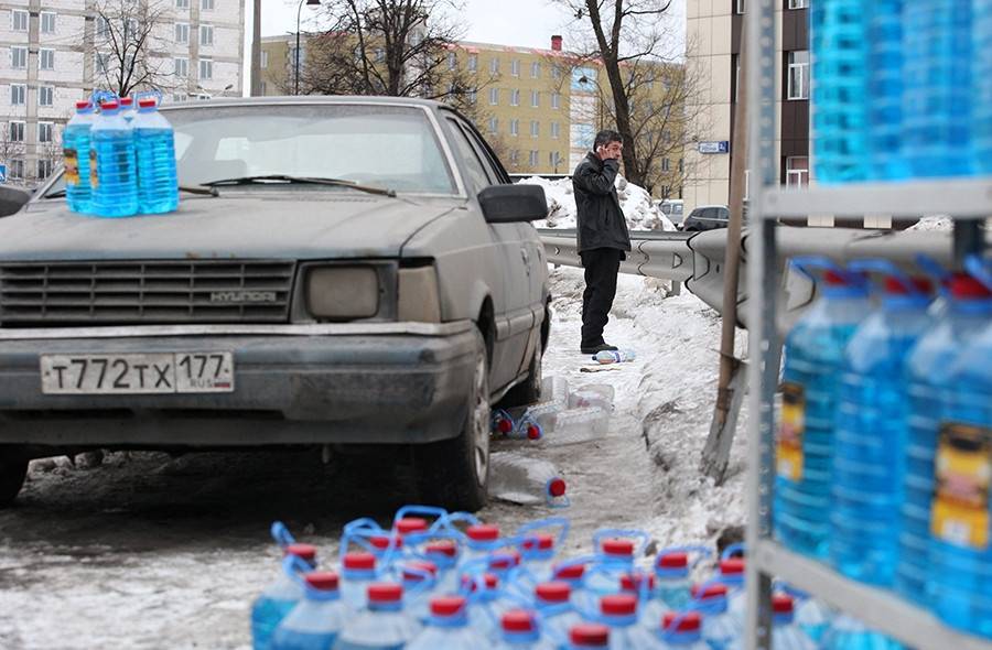 Если вы зимой окажетесь в Москве, то сможете наблюдать на обочинах несчетное количество пирамид из пятилитровых пластиковых бутылок с синей жидкостью внутри. Обычно эта пирамида стоит на капоте автомобиля «Жигули», чей владелец продает омывайку для ветрового стекла. Из-за свирепого мороза ваша жидкость может замерзнуть, а зимние дороги обычно настолько грязные, что вам будет ничего не видно из-за грязи и льда. Тогда-то вы и порадуетесь этим спасителям — продавцам «Антифриза». Вы можете подвергнуть сомнению юридическую сторону их бизнеса, но не стоит подвергать сомнению качество покупаемой жидкости. Она намного лучше, чем-то, что продается в обычных магазинах. В основном потому, что они используют запрещенные химикаты для его производства. Ужасные пробки, особенно на дорогах Москвы, породили тысячи «дорожных бизнесменов». Они ходят в пробках и продают всякую всячину: цветы, зарядные устройства для автомобиля, наклейки, флаги.