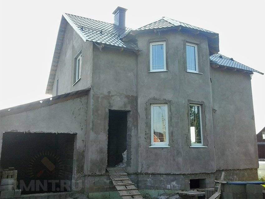 Внешняя отделка стен из пеноблока для бани проводится аналогично внутренней.