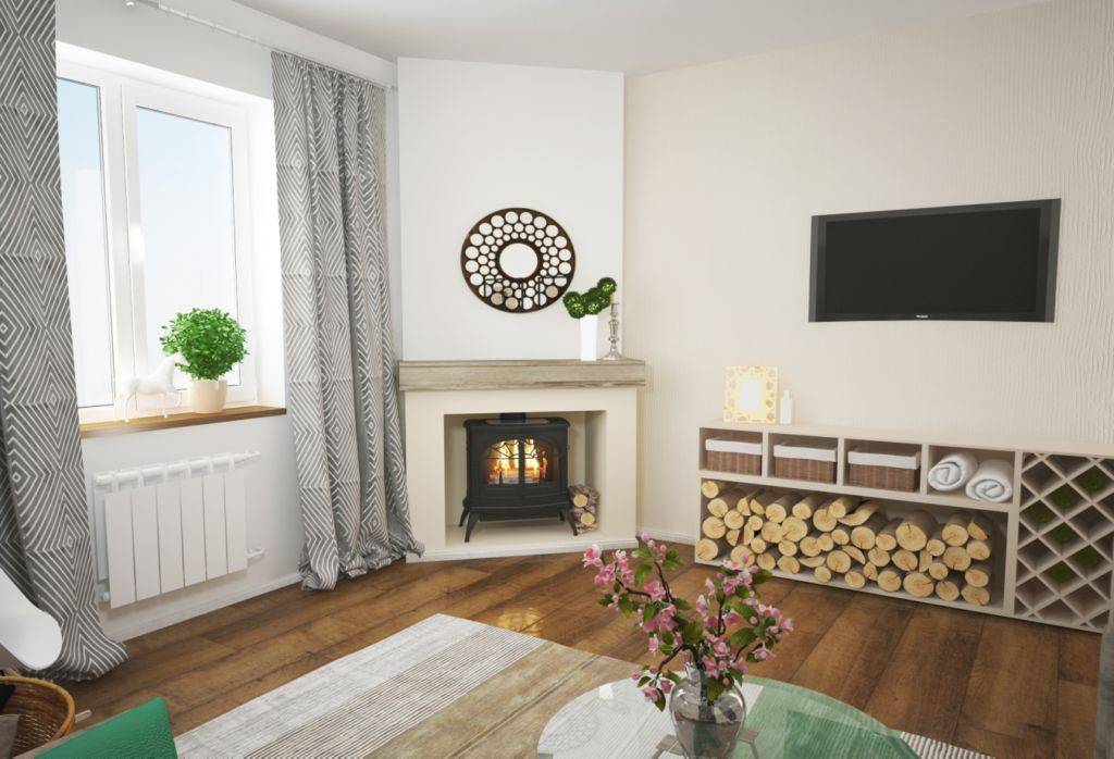 Полы выполнены из светлой древесины или имитирует ее фактуру. Потолок полностью белый или с деревянными балками. Скандинавский интерьер предполагает окна без штор — только лаконичная белая рама. Но шторы допустимы, они должны быть плотными и сливаться с общей отделкой гостиной.