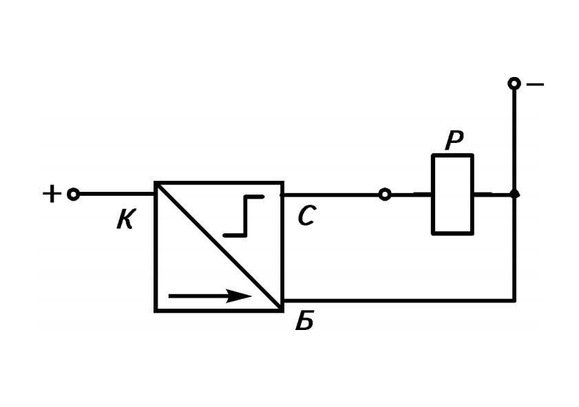 На рис. 2 приведена схема присоединения выключателя к источнику питания и подключения к нему реле Р.