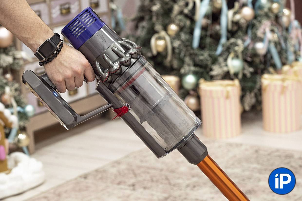 Ну и главное, что не поменялось в V10 – то, как легко им убирать. Я уже не замечаю этот процесс, и отсутствие провода тут играет немалую роль. Взял пылесос в руку, походил с ним, повесил на место. Вес небольшой, хват идеальный.
