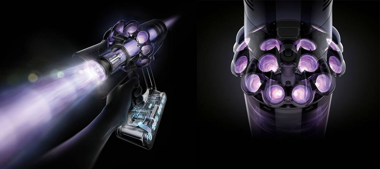 Пылесос затягивает в контейнер как крупную пыль и загрязнители, так и микроскопические частицы (пыльцу и бактерии), генерируя силу более 79 000 g. Поток воздуха проходит через устройство очень эффективно из-за концентрического расположения 14 циклонов вокруг центральной оси. По мере сужения циклона скорость потока воздуха увеличивается с 72,4 км/ч до 193 км/ч, создавая центробежные силы, улавливающие даже незаметные частицы пыли.
