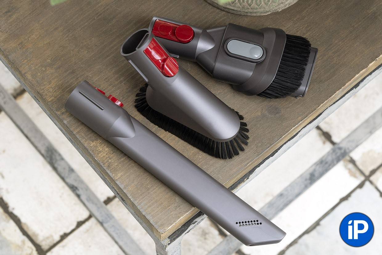 Новый Dyson V8 Absolute также поставляется с мини-моторизованным щеточным инструментом, похожим на тот, который можно найти на V6, который поможет вам очистить обивку, такую как тканевые диваны и матрасы.