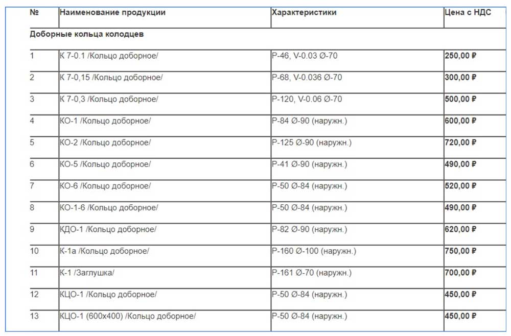 Рис. 8 Опорные и доборные кольца ЖБИ для канализации – прайс-лист