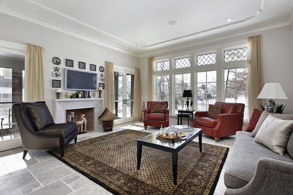 - Зона отдыха в гостиной должна быть одноцветной. Разделить предметы мебели и покрытие пола можно лишь визуальной игрой текстуры поверхностей.