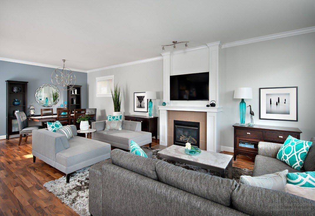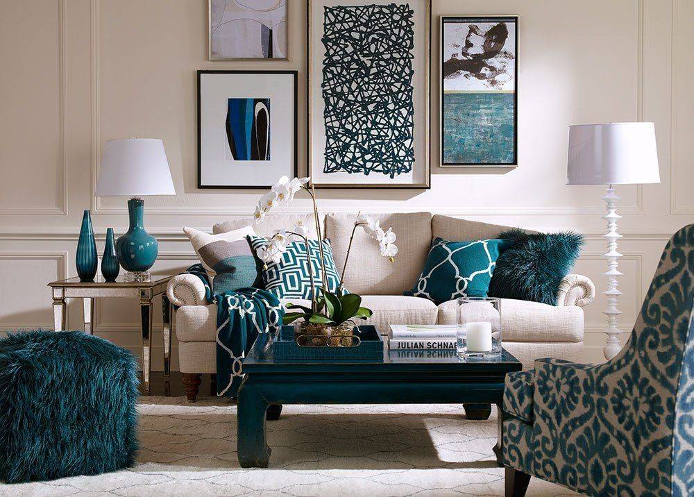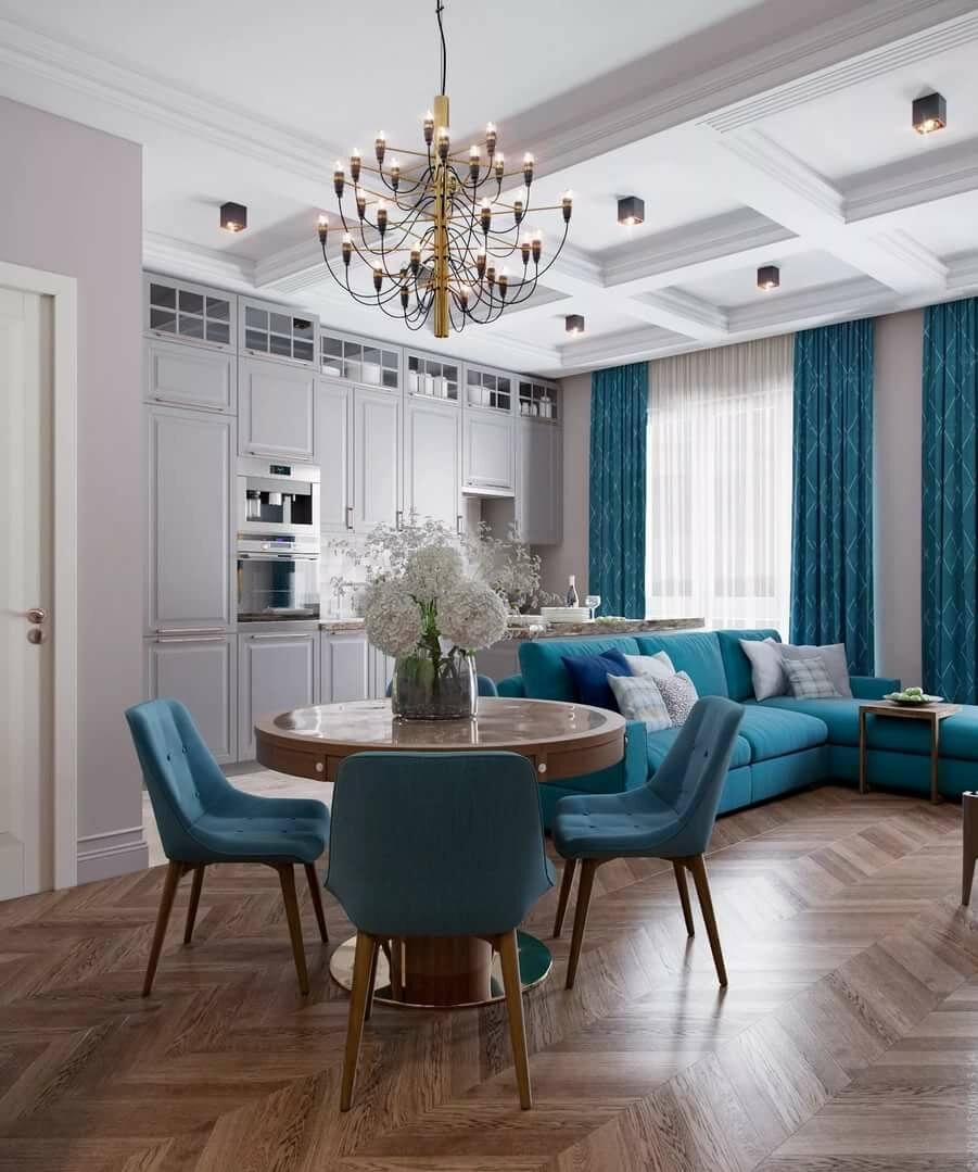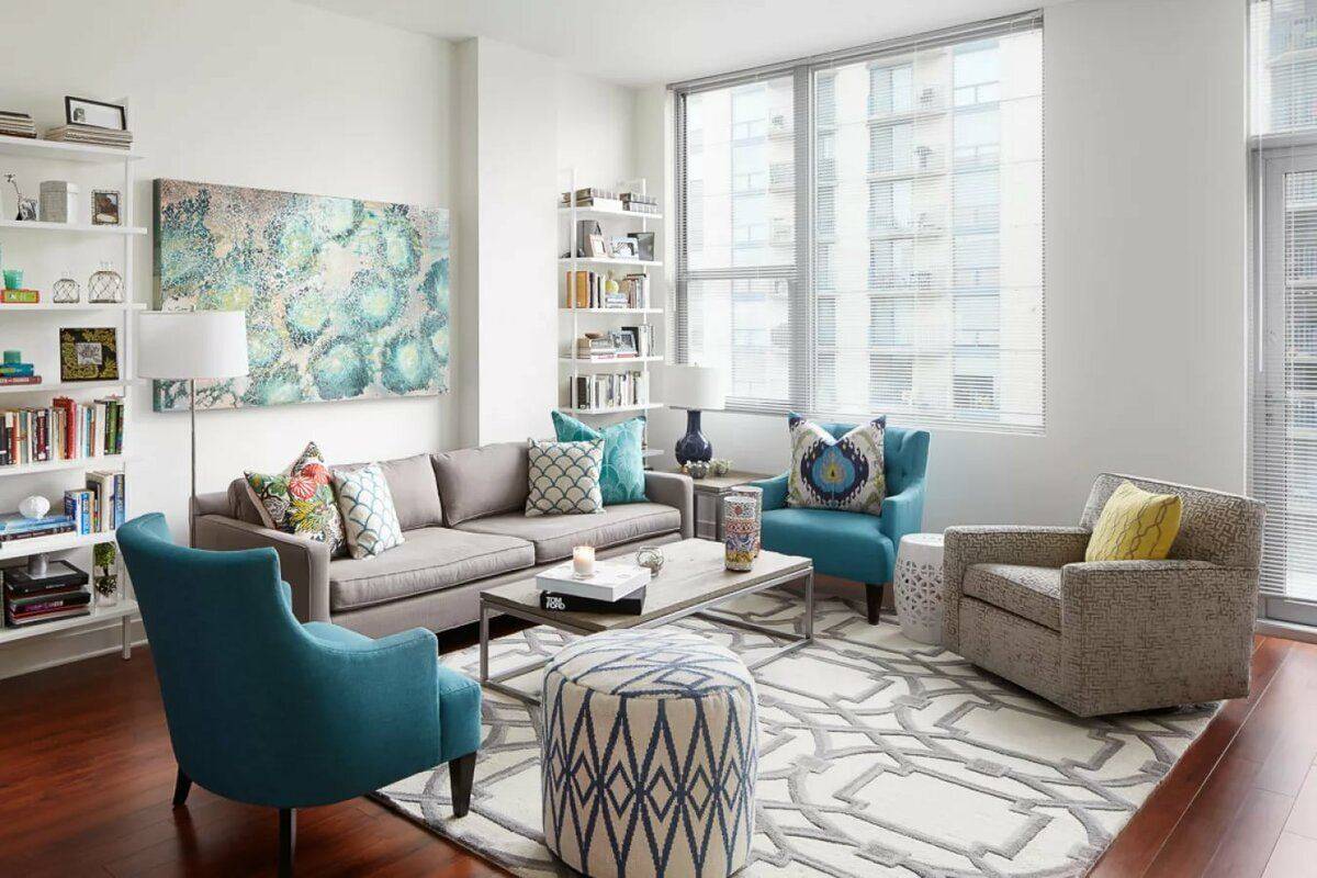 В современных интерьерах часто царят минимализм и сдержанная цветовая палитра. Тем не менее, вы можете видеть, что дизайнеры все чаще хотят добавить бирюзовые акценты в качестве модных акцентов. Посмотрите, как можно использовать данный цвет в современной гостиной.
