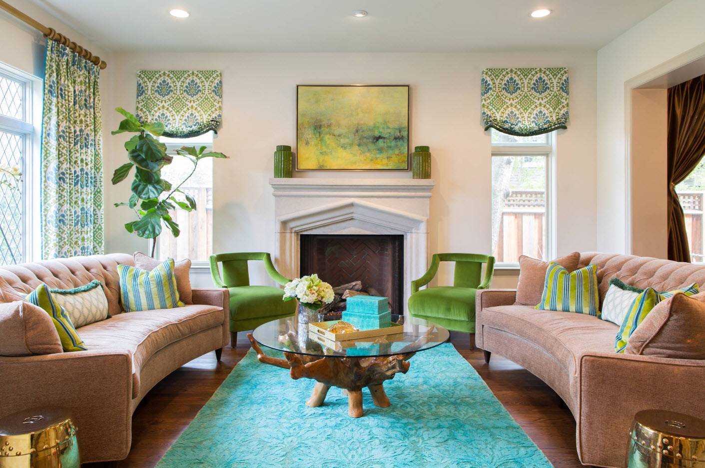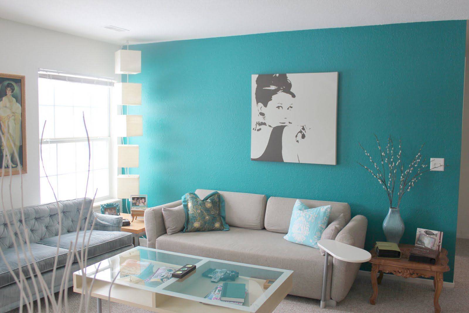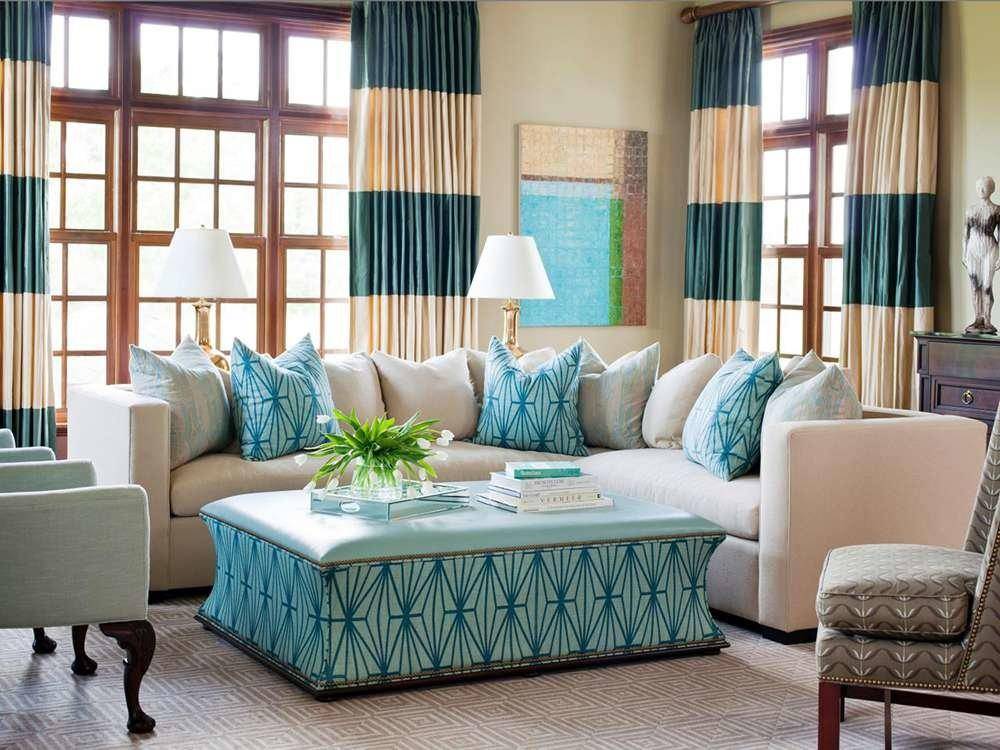 Шторы и прочие аксессуары в гостиную бирюзового цвета