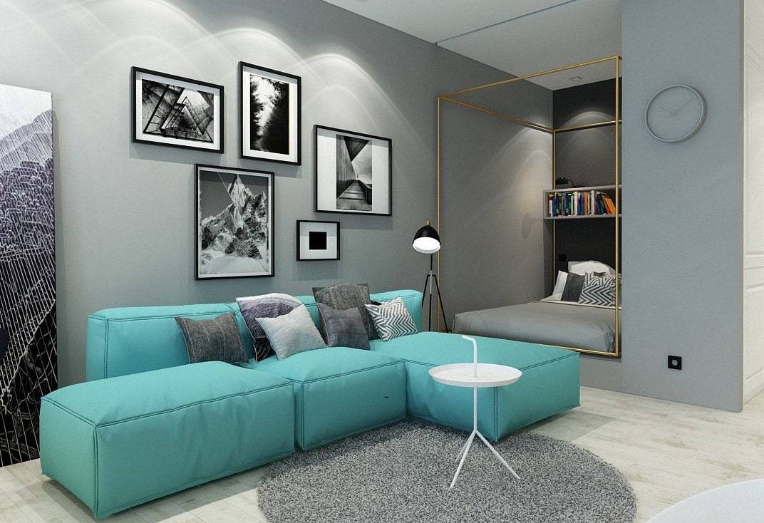 Бирюзовый диван в гостиной лофт