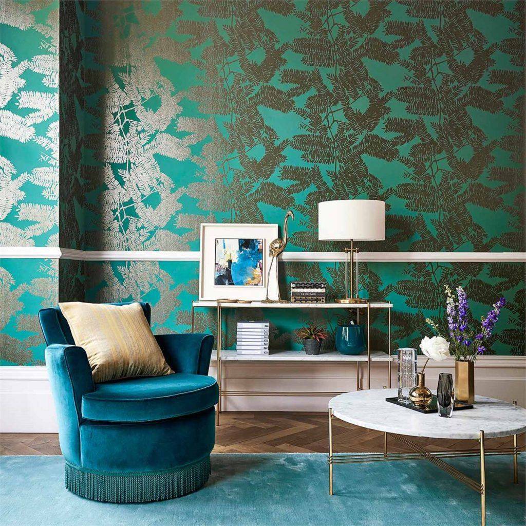 Это достаточно универсальный цвет: он подходит ко многим стилям. Так, насыщенный бирюзовый тон с характерными узорами впишется в классический стиль. А добавив к этому цвету хромированные детали можно создать хай-тек.