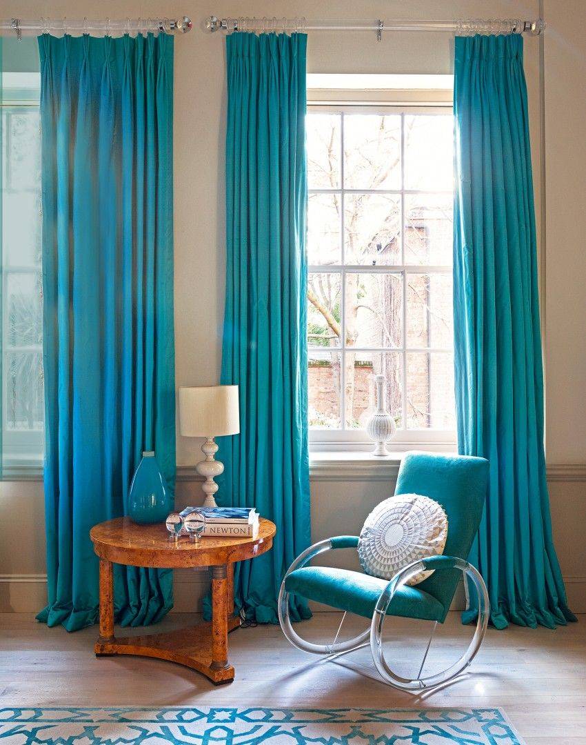 бирюзовые шторы подходят под любой стиль интерьера