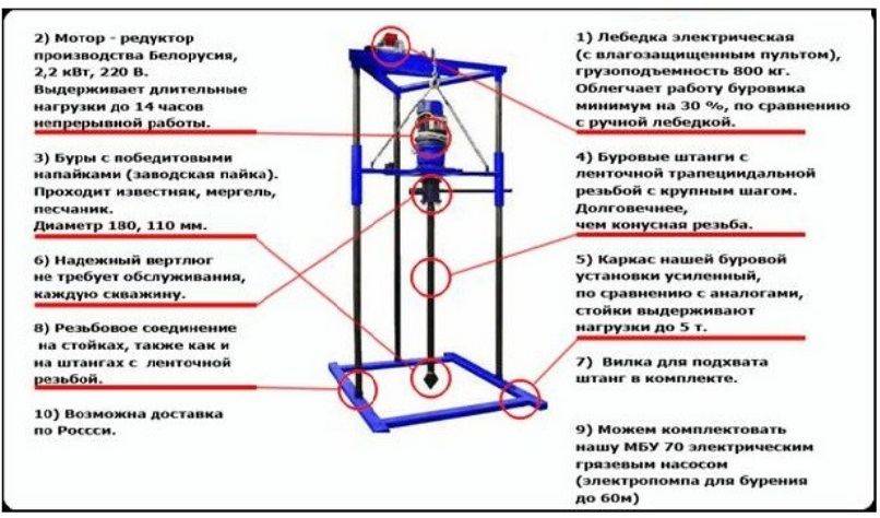Следует отметить, что практически все буровые станки имеют аналогичное строение описанной ранее структуре. Касается это не только устройств для формирования скважин для воды, но и нефтяных механизмов. Но в мощных станках уже применяют более прочные материалы, способные выдерживать высокие нагрузки. Поэтому подобное оборудование невозможно соорудить самостоятельно без применения специальных технологий.