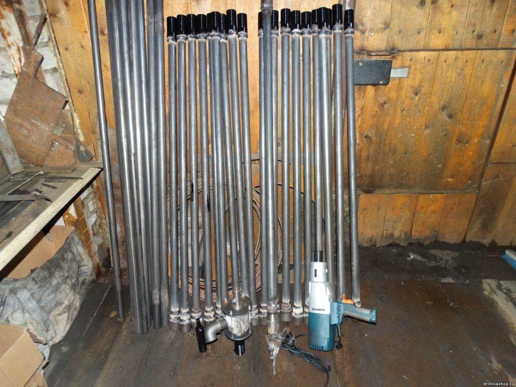 Кроме всего прочего для работы потребуются обсадные трубы, чтобы формировать ствол скважины, лопата и приспособление для вывоза с участка шлама.