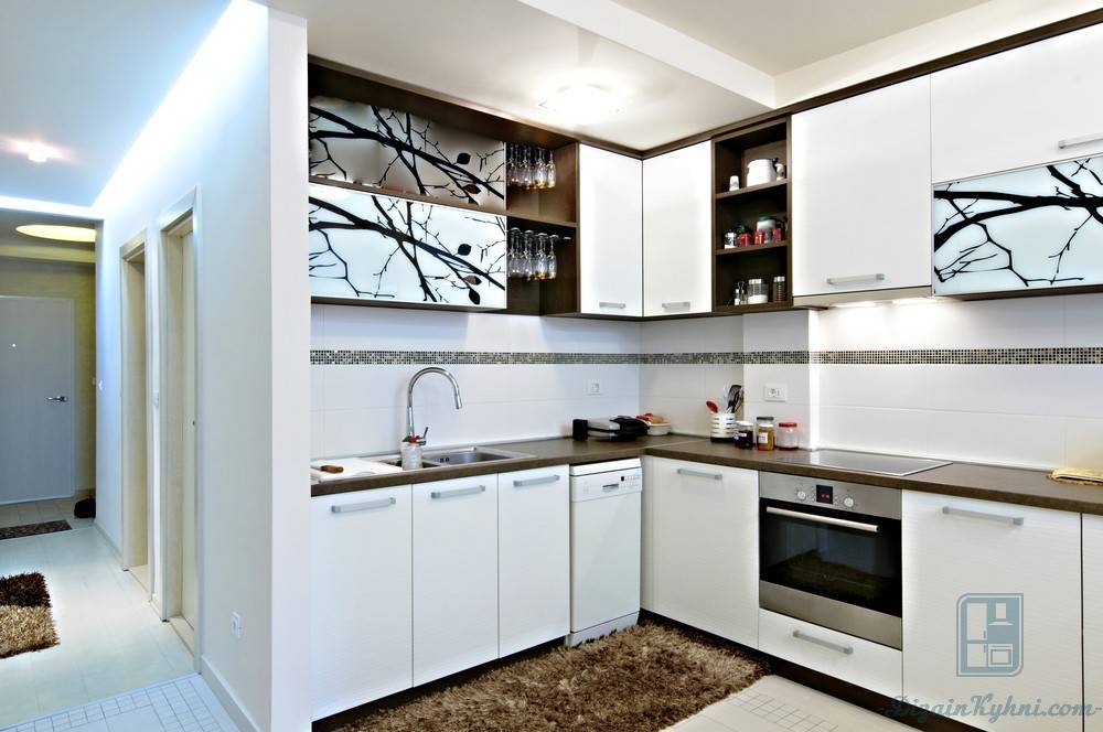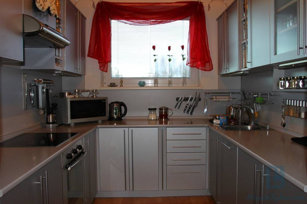 Это тоже достаточно распространенное расположение. Прекрасно, если у вас есть место для высоких шкафов. Куда красивее получится, если рядом тоже установить что-то с аналогичной высотой – еще один шкафчик или холодильник – стильная мебель в кухонном пространстве никому не вредит. Такая установка является прекрасным вариантом для сохранения как можно больше свободного пространства.