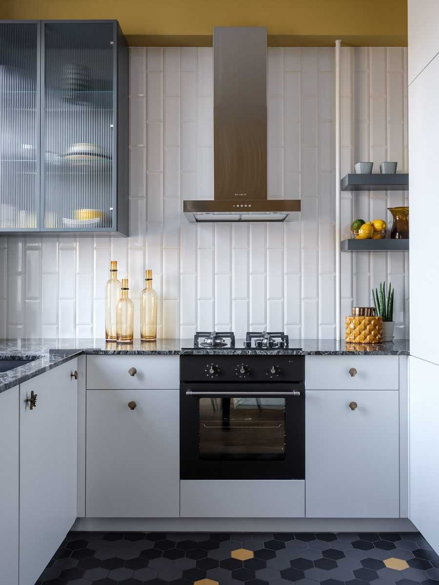 Важно также определиться с цветом кухонного фартука. Он может сыграть роль яркого пятна в монохромном интерьере