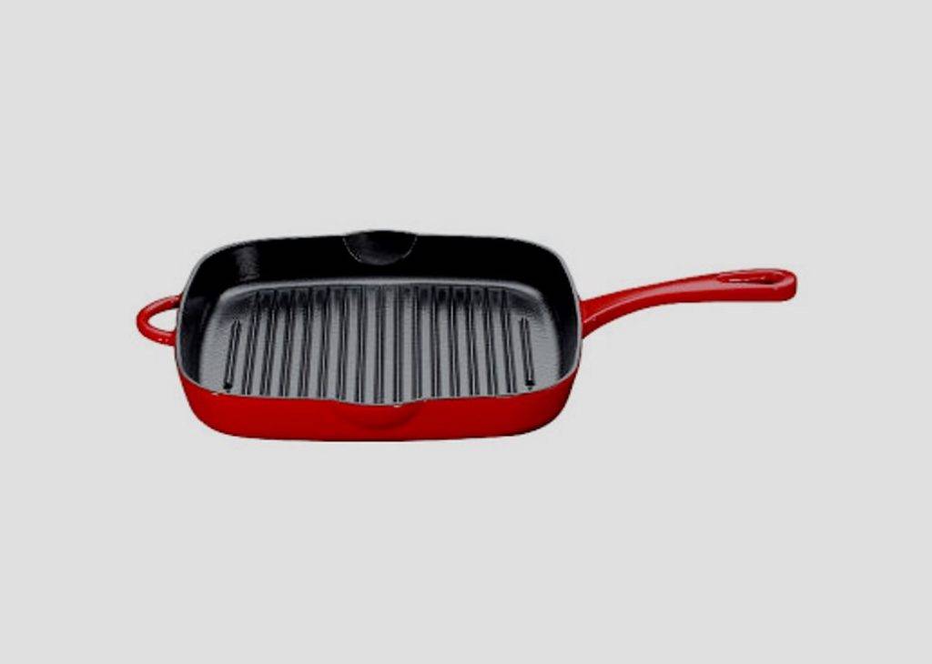 Эта модель имеет квадратную форму. Заявленные производителем габариты: 430х276х55 мм. Для изготовления применяется красный чугун. Материал характеризуется превосходной теплопроводностью. Время приготовления пищи будет минимальным. Отдельного внимания заслуживает возможность применения конструкции в комплексе с плитами любого типа. Дизайн лаконичный. Расцветка яркая, красная. Ручки не снимаются и характеризуются эргономичной формой. Внутреннее покрытие – эмалевое. Такое покрытие нельзя мыть посредством агрессивных и абразивных моющих средств. Отличное дополнение к уже имеющемуся кухонному гарнитуру. Вес – 3,15 кг.