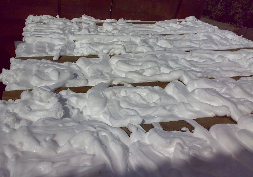 - На подготовленную поверхность клеятся листы пенопласта или другого материала.