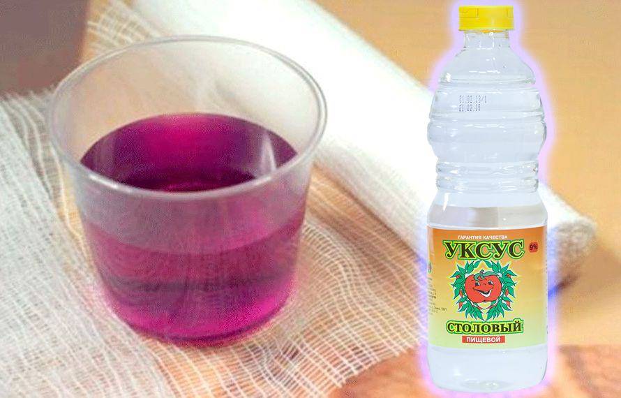 - В емкость с холодной водой добавить марганцовку и уксус.