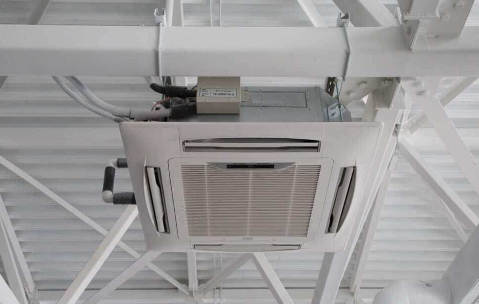 При использовании канальных фанкойлов можно обеспечить одинаковый температурный режим в разных помещениях. Такое оборудование прогревает воздух в вентиляционном коробе, который может разветвляться и вести в несколько помещений.
