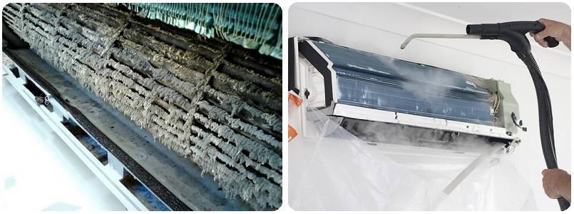 Если корпус наружной части засорен, то теплообмен нарушается, двигатель перегревается и ломается. Чистят внешний блок раз в год.
