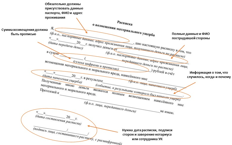 Важно! Обязательно возьмите расписку, подтверждающую, что урон возмещен и претензий у пострадавшей стороны нет.