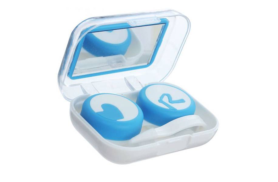 при обращении с контактными линзами удобно использовать дорожный набор — такой футляр комплектуется зеркалом, пинцетом для линз (им удобно вынимать оптику из раствора), контейнером, емкостью для многофункционального раствора;