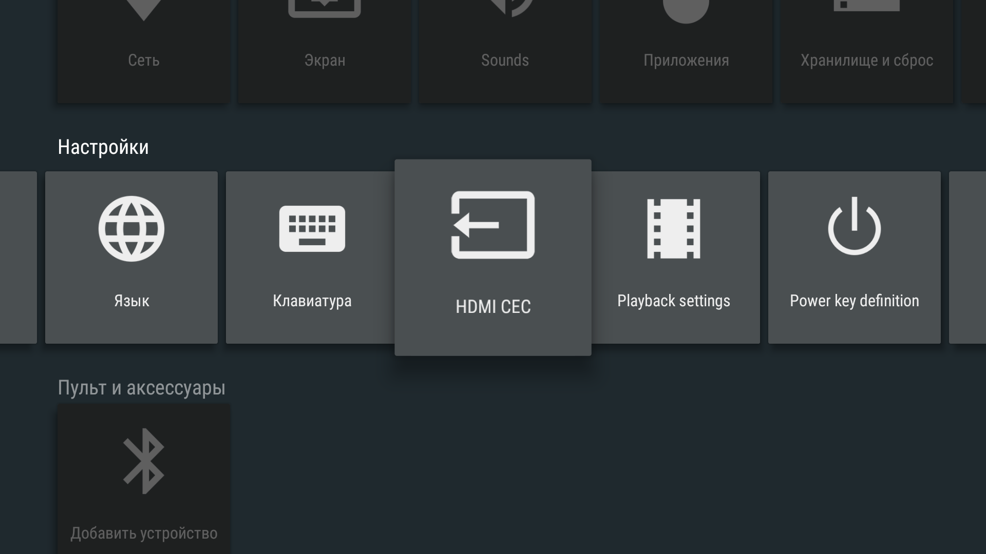 Для активации HDMI-СЕС на приставке выполняем аналогичные действия: