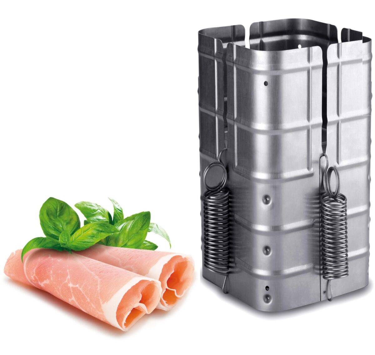 Ветчинница представляет собой металлический контейнер цилиндрической формы, внутрь которого помещаются продукты и сильно прессуются с помощью встроенной пружины. Далее они томятся при невысокой температуре (примерно 100 градусов) на протяжении нескольких часов. Благодаря слабой термообработке и длительном запекании мясо получается максимально нежным и сочным.