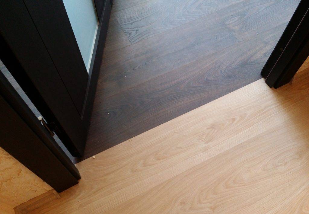 При такой очередности понадобится чуть больше сноровки и умения, чем при первом варианте замены. Также этот вид ремонта более затратен, а результат может не оправдать ожидания. Если при замене ламината не угадать с уровнем, на который поднимется пол, то двери будут задевать доски и тереться об них. Возможно появление и других видимых огрехов (зазоров, щелей, перепадов по высоте между покрытием в разных комнатах).