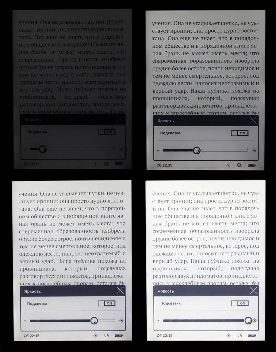 Перед началом работы с читалкой, настройте яркость и шрифты, войдя в меню «Настройки»