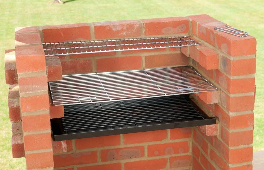 - решетки для углей (дров) и приготовляемой пищи. Место для углей может быть представлено сплошной плитой или решеткой, под которой располагается поддон. Это достаточно удобно – по мере прогорания углей зола ссыпается в поддон, откуда ее несложно убрать. Решетка для продуктов может быть одна или две-три;
