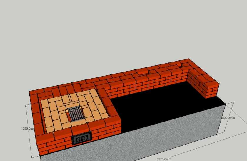 - если терраса или беседка имеют деревянный настил, то для очага потребуется плитный фундамент, превышающий его размеры на 50-100 см по периметру.