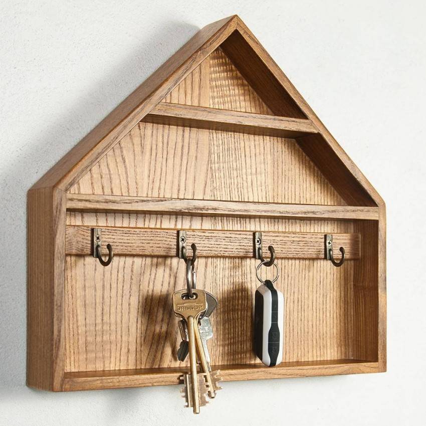Подготовьте деревянные заготовки подходящего размера. Материал необходимо зашлифовать. Для формирования идеально гладкой поверхности, по дереву проходятся «наждачкой». Что касается отделки, то здесь можно руководствоваться собственным вкусом – вскрыть поверхность краской, лаком или наклеить на него декоративную бумагу. На завершающем этапе к доске прикрепляются крючки (шуруповёртом).