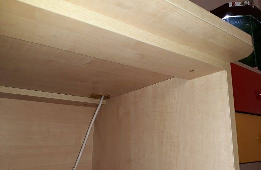 - Также крепеж допускает многократную сборку и разборку. Всегда можно притянуть столешницу изнутри в другом месте, а предыдущие отверстия заглушить, ведь их там никто не видит.