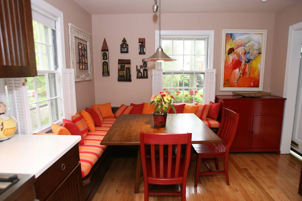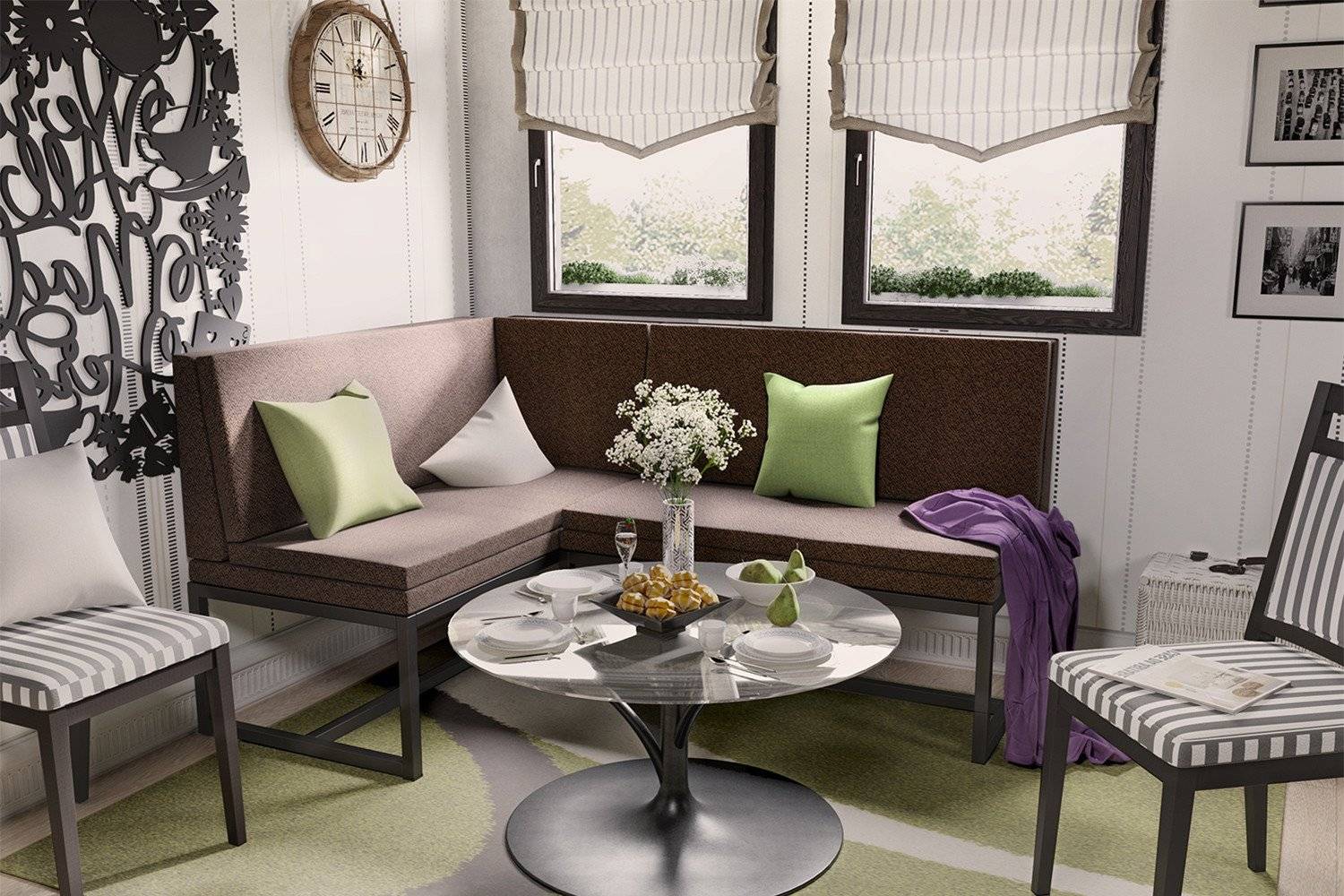 Устанавливать угловой диван лучше в кухне, которая не менее 14 кв. метров. В противном случае следует ограничиться небольшим прямым диванчиком или вовсе отказаться от такой идеи.