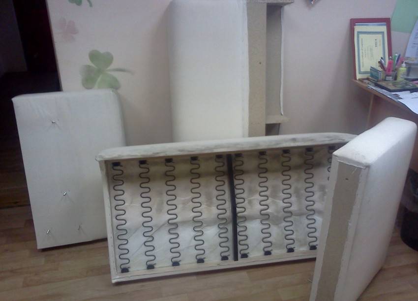 Ремонт пружинного механизма, замена наполнителя и мягкой оббивки дивана-кушетки