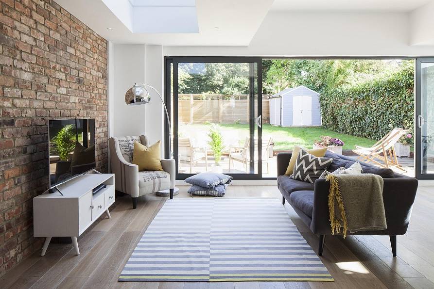 Чтобы заострить внимание на определенных деталях, их выделяют цветом. Это могут быть синие подушки на диване, черные ручки шкафов, темно-коричневые ножки стульев