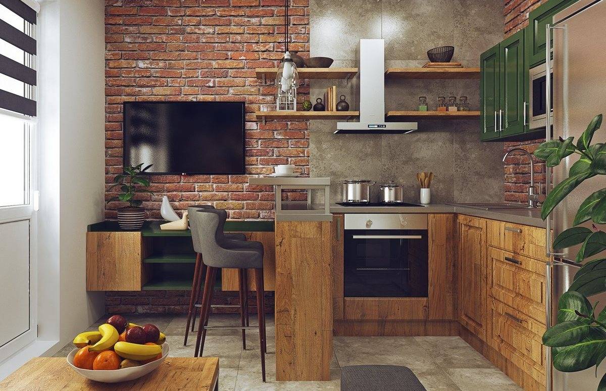 При оформлении кухни специалисты рекомендуют использовать кирпич, природный камень, декоративную штукатурку и фактурную плитку. Металл допустим, но количество его стоит ограничить – он не должен бросаться в глаза.